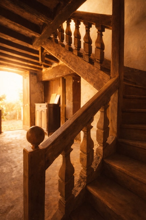 Des éléments anciens remarquables : escalier bois du XVIe siècle, portes d’époque, cave voûtée, vestige de l’ancienne chapelle
