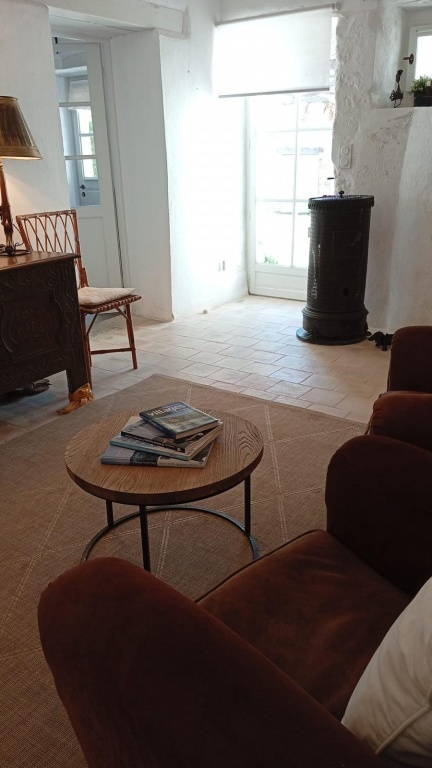 Au rez-de-chaussée, une spacieuse cuisine avec cheminée accueille vos repas en famille, complétée par une entrée / petit salon d'hiver, avec WC et un vaste salon troglodyte baigné de lumière grâce à sa grande baie vitrée ouvrant sur la cour.